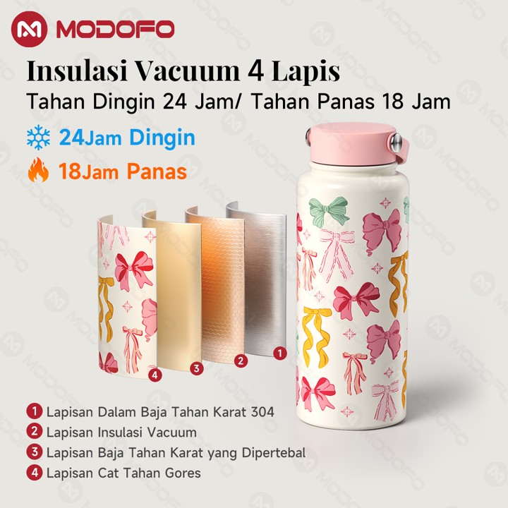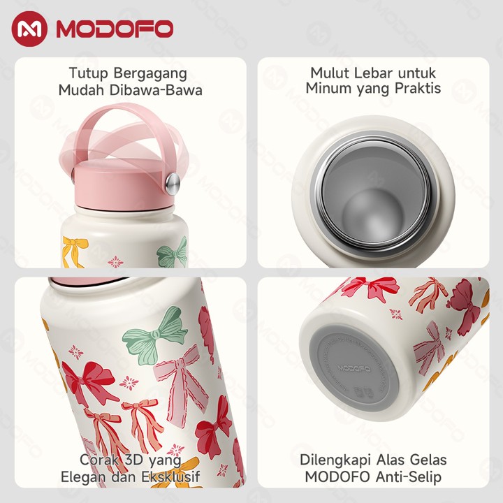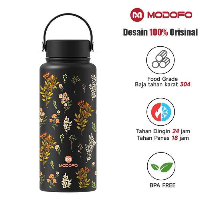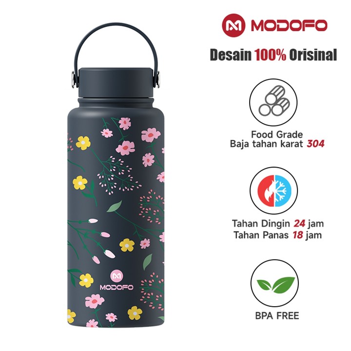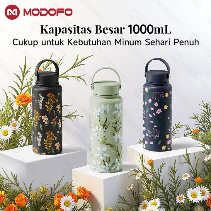 MODOFO Tumbler 1000ml menawarkan desain aesthetic dengan motif bunga yang populer di kalangan anak muda, diklaim mampu menjaga suhu minuman hingga 24 jam. Dengan harga terjangkau di bawah Rp 60.000, produk ini menjadi alternatif ekonomis untuk kebutuhan minum sehari-hari maupun hadiah.