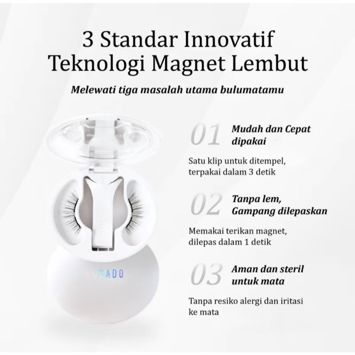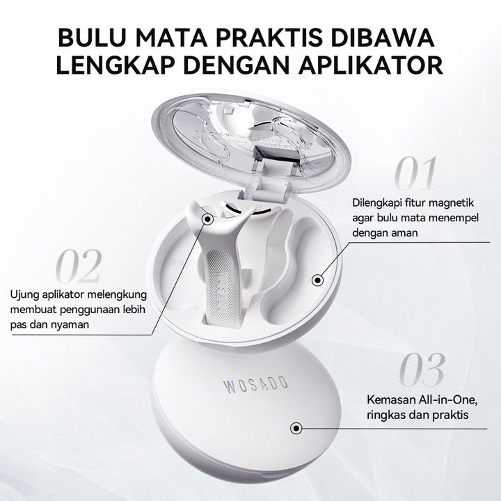 Bulu mata palsu magnetik WOSADO menawarkan kemudahan aplikasi dengan teknologi 'R-SLM' yang diklaim membuat riasan lebih cepat dan natural. Cocok untuk pemula karena kemudahannya dipasang, namun perlu diperhatikan bahwa kenyamanan jangka panjang dan kesesuaian bentuk mata sangat subjektif.