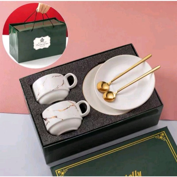 Set gelas/mug motif marmer premium ini adalah pilihan kado elegan untuk berbagai momen spesial seperti pernikahan atau anniversary. Dengan desain bergaya marble modern, produk ini menawarkan tampilan mewah dengan harga yang sangat terjangkau.