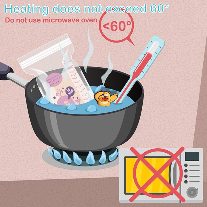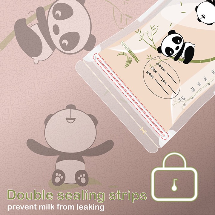 Material yang digunakan adalah plastik khusus yang dirancang untuk menjaga kualitas ASI. Meskipun deskripsi tidak merinci jenis plastiknya, adanya segel ganda (double lock) menunjukkan perhatian pada konstruksi yang bertujuan meminimalisir kebocoran dan kontaminasi selama penyimpanan.