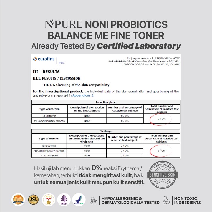 Toner Noni Probiotics ini diformulasikan secara ilmiah dengan kombinasi <strong >61% Natural Noni Extract</strong> dan <strong >9X Probiotics Complex</strong> untuk menyeimbangkan mikrobioma kulit, meredakan kemerahan, dan memperkuat skin barrier secara optimal. Dengan formula yang lembut dan teruji, produk ini sangat ideal untuk menjaga kesehatan kulit sensitif sehari-hari.