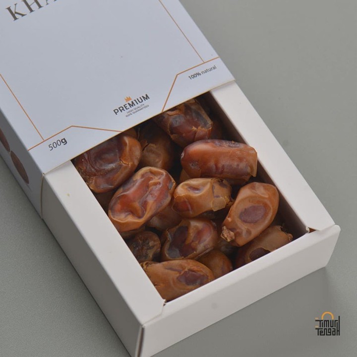 Kurma Khalas Premium dari Timur Tengah ini menawarkan pengalaman rasa manis alami dengan tekstur lembut khas kurma berkualitas tinggi. Dengan sertifikasi Halal dan izin edar resmi, produk ini menjamin keaslian dan keamanan konsumsi harian Anda.