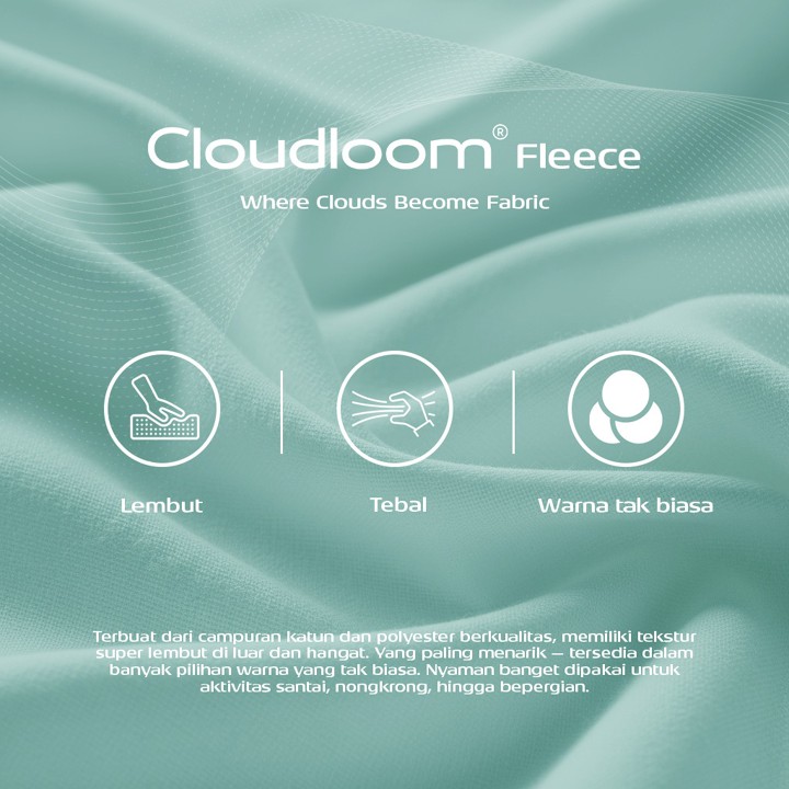 Kualitas utama produk ini terletak pada desainnya yang menawarkan fleksibilitas pilihan antara model Hoodie standar maupun Ziphoodie berresleting. Fitur bodyfit pattern memastikan pakaian mengikuti kontur tubuh dengan baik, sementara branding 'Cloudloom' menyiratkan kenyamanan premium yang menjadi daya tarik utama di pasar pakaian kasual.