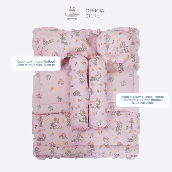 Set kasur bayi Bumbee Collection menawarkan solusi tidur dan bermain multifungsi dengan desain dua sisi motif hewan yang menarik. Produk ini dilengkapi kelambu, bantal anti peyang, dan guling dengan bahan katun yang lembut, sangat cocok untuk bayi usia 1-3 tahun.