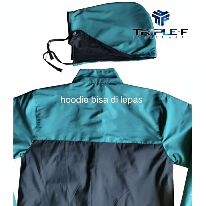 Kualitas dan fitur utama produk ini berfokus pada kepraktisan dan perlindungan elemen, didesain khusus untuk menahan angin dan air dengan fitur hoodie yang dapat dilepas. Jaket ini dilengkapi dengan tiga kantong depan dan kantong dalam untuk penyimpanan, serta model resleting yang memudahkan penggunaan, menjadikannya solusi serbaguna untuk cuaca dingin maupun hujan tanpa perlu membawa jas hujan terpisah.