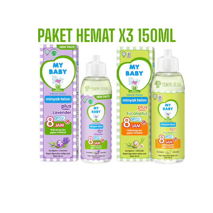 Paket hemat My Baby Minyak Telon Plus dengan aroma Eucalyptus & Lavender, ideal untuk menjaga kehangatan dan memberikan aroma menenangkan pada bayi. Produk ini diformulasikan dengan campuran minyak herbal yang teruji untuk membantu perlindungan dari serangga hingga 8 jam.