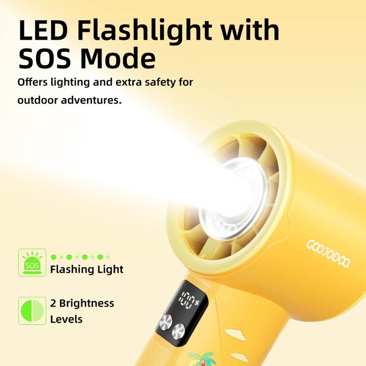 Kelebihan utama produk ini terletak pada kombinasi fitur yang sangat fungsional; selain kipas genggam dengan motor brushless 10800RPM yang mampu menghasilkan angin hingga 9m/s dan menawarkan 100 tingkat kecepatan, ia juga dilengkapi senter dengan dua tingkat kecerahan dan mode SOS. Fitur multifungsi ini sangat meningkatkan nilai guna, menjadikannya solusi hemat tempat untuk kebutuhan pendinginan dan penerangan darurat.