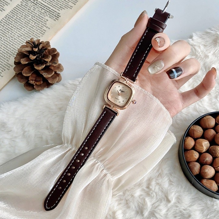 Loggio Jam Tangan Wanita ini menggabungkan gaya retro Korea dengan desain persegi elegan yang cocok untuk berbagai acara. Dilengkapi dengan mesin kuarsa presisi dan strap kulit sapi asli, jam ini menawarkan tampilan anggun dengan harga yang sangat terjangkau di bawah Rp 50.000.
