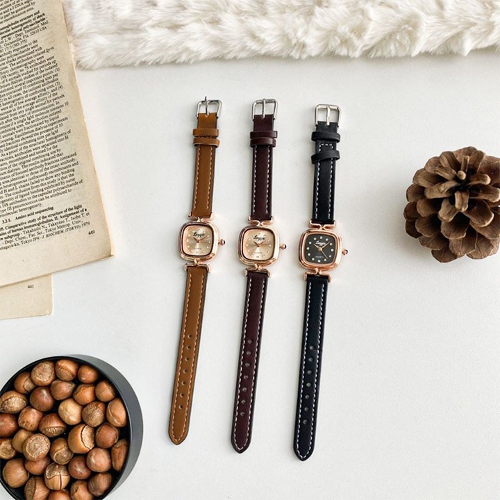 Wanita yang menyukai gaya retro Korea, mahasiswa, atau pekerja kantoran yang membutuhkan jam tangan fashion dengan budget terbatas namun tetap menginginkan material kulit asli.