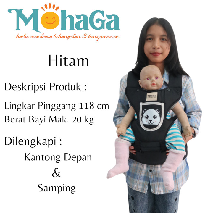 Bahan utama menggunakan kain Twill kombinasi yang didesain adem dan tidak menyerap keringat berlebihan, mengurangi risiko iritasi kulit pada bayi. Produk ini memiliki bobot ringan sekitar 1kg namun mampu menahan beban maksimal 20kg, dengan lingkar pinggang yang dapat menyesuaikan hingga 120cm, cocok untuk berbagai ukuran tubuh orang tua.