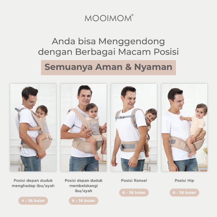 Gendongan Bayi Hipseat MOOIMOM ini menawarkan solusi menggendong modern yang sangat nyaman, didesain ergonomis untuk mengurangi beban pada bahu dan pinggang penggendong. Dengan fitur hipseat yang mendukung posisi bayi, produk ini menjanjikan kestabilan dan kenyamanan optimal untuk bayi usia 4 hingga 36 bulan.