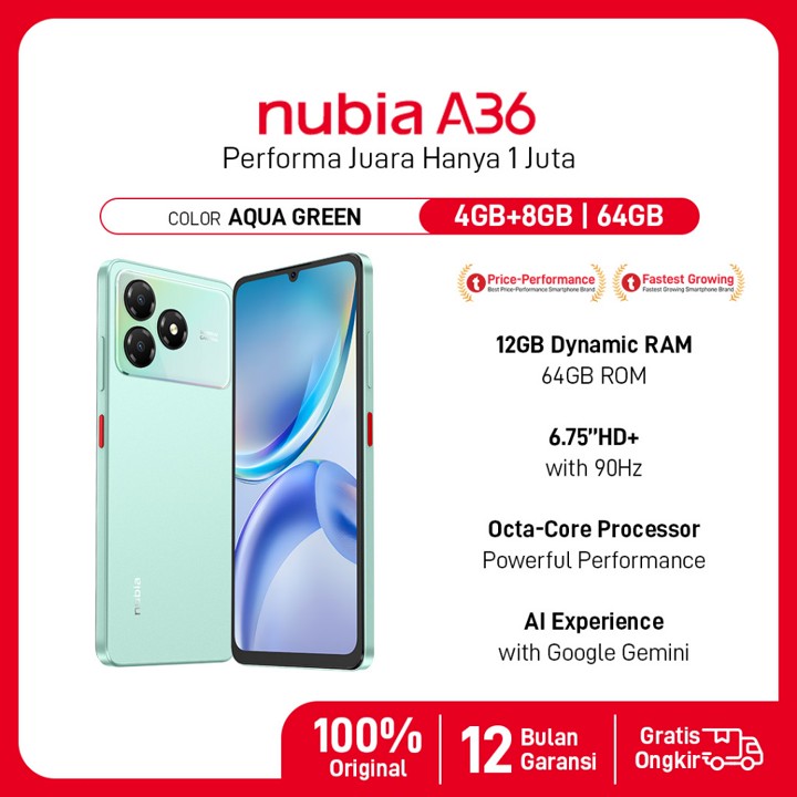 Dengan harga di bawah Rp 1.3 juta, Nubia A36 menawarkan value for money yang sangat tinggi dibandingkan kompetitor sejenis yang seringkali kurang lengkap fitur layarnya. Kombinasi RAM virtual 12GB dan penyimpanan 64GB cukup untuk penggunaan dasar, menjadikannya alternatif ekonomis yang sulit ditolak di segmen entry-level.