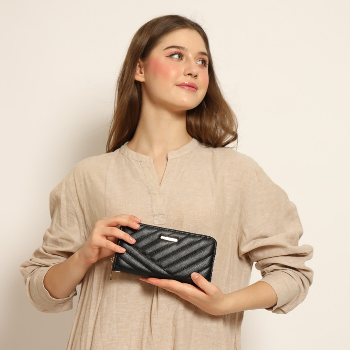 Wanita usia muda hingga dewasa yang aktif, membutuhkan dompet serbaguna dengan kapasitas besar untuk membawa banyak kartu identitas, kartu pembayaran, dan uang tunai dalam acara kasual.