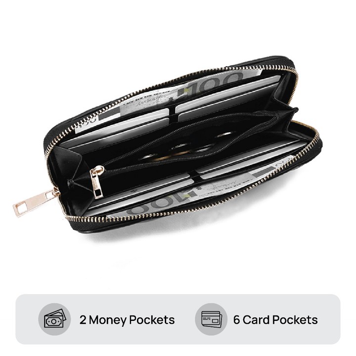 Secara fitur, dompet ini menonjolkan desain modern dan fungsionalitas yang luas, didukung oleh kombinasi slot kartu yang cukup banyak (disebutkan 8 slot, namun spesifikasi hanya menyebut 4 slot kartu utama) serta kompartemen utama yang besar untuk uang kertas dan koin. Kehadiran kantong tersembunyi dengan resleting menambah nilai kepraktisan, memastikan barang berharga dapat disimpan dengan aman dan terorganisir.
