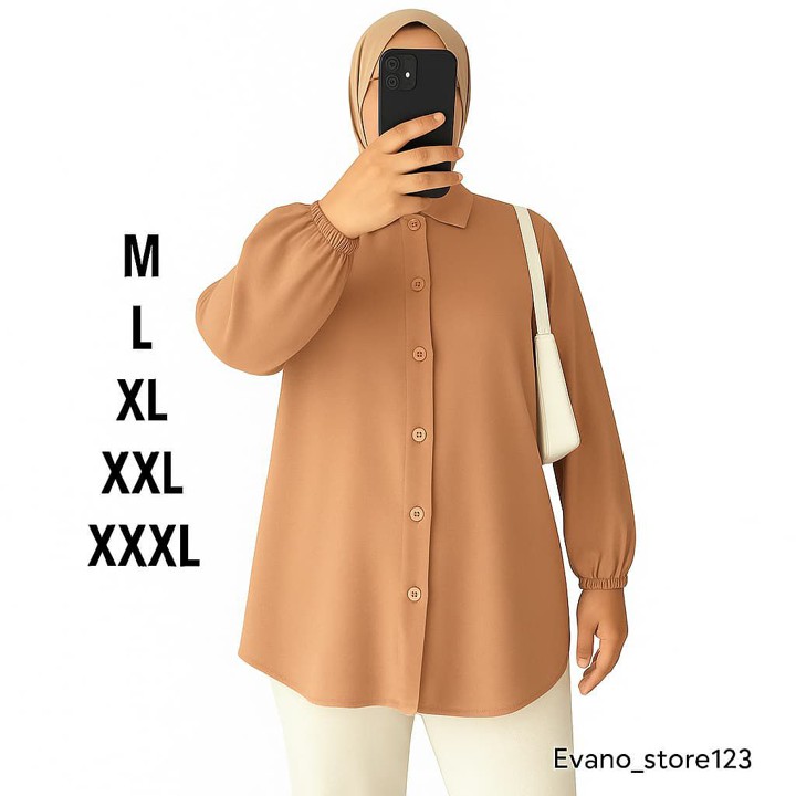 Kemeja wanita jumbo berbahan Rayon Twill Premium ini menawarkan kenyamanan maksimal dengan desain basic dan elegan. Dengan fitur busui friendly dan ukuran jumbo hingga XXXL, kemeja ini sangat cocok untuk kebutuhan sehari-hari hingga acara semi-formal.
