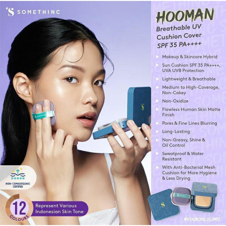 Cushion Cover Hooman ini menawarkan solusi *makeup* harian dengan teknologi 'Breathable Mesh' lokal, memberikan cakupan medium hingga tinggi sekaligus perlindungan UV SPF 35 PA++++. Diformulasikan untuk hasil akhir *matte*, tidak berminyak, dan tahan lama, menjadikannya pilihan *all-in-one* untuk kulit tampak mulus seharian.