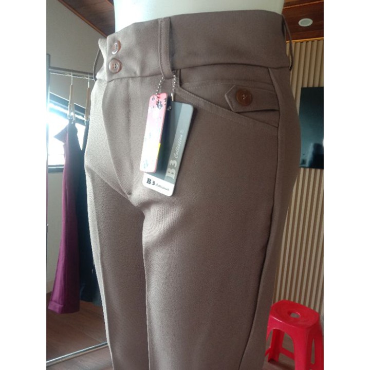 Wanita usia produktif (22-45 tahun) yang bekerja di lingkungan kantor formal/semi-formal, mencari celana kerja sehari-hari yang nyaman, elastis, dan tidak kaku, serta membutuhkan pilihan ukuran yang inklusif (hingga 5L).