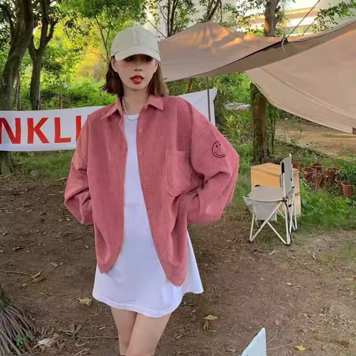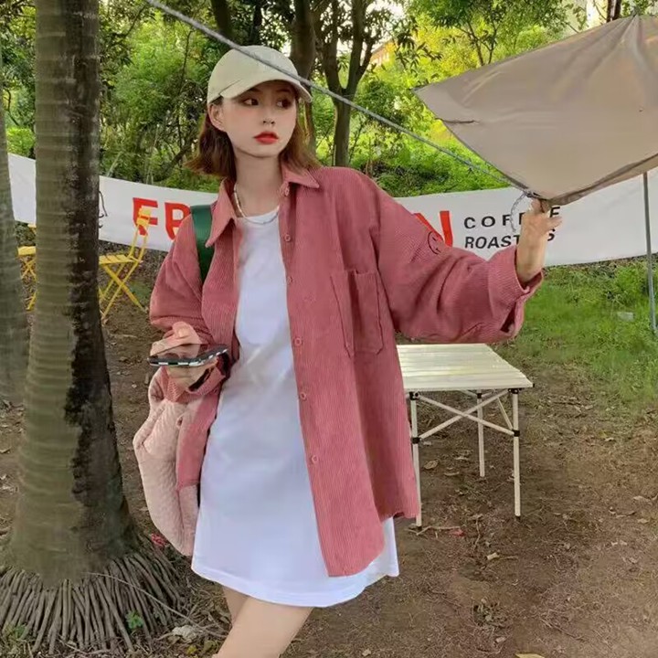 Kemeja korduroi lengan panjang bergaya Korea dengan potongan longgar (oversize), ideal untuk gaya kasual sehari-hari. Dibuat dari bahan katun dengan motif print, kemeja ini menawarkan tampilan retro dan streetwear yang mudah dipadupadankan.