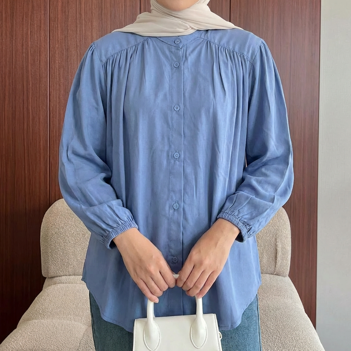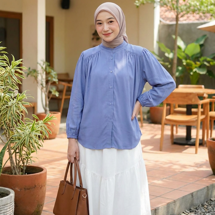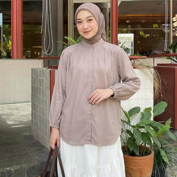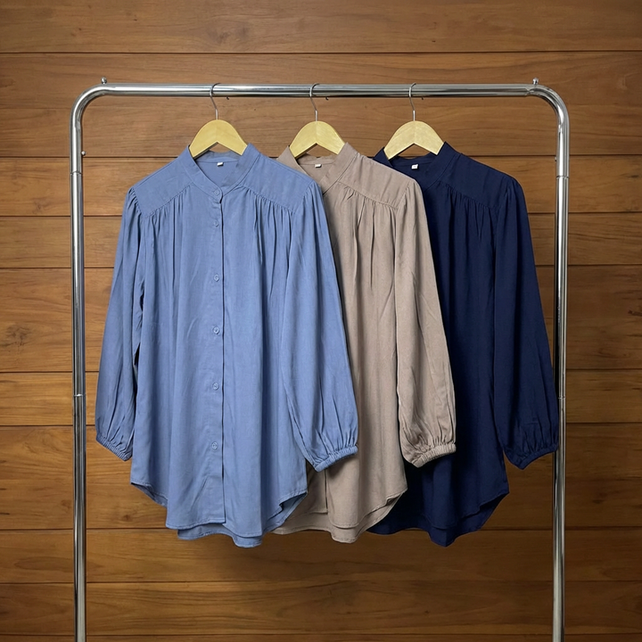 Blus kemeja wanita dari bahan Rayon Twill premium ini menawarkan tampilan basic, minimalis, dan kekinian untuk gaya kasual sehari-hari. Dengan kenyamanan bahan yang adem dan jatuh, atasan ini sangat ideal untuk kebutuhan OOTD yang serbaguna dan terjangkau.