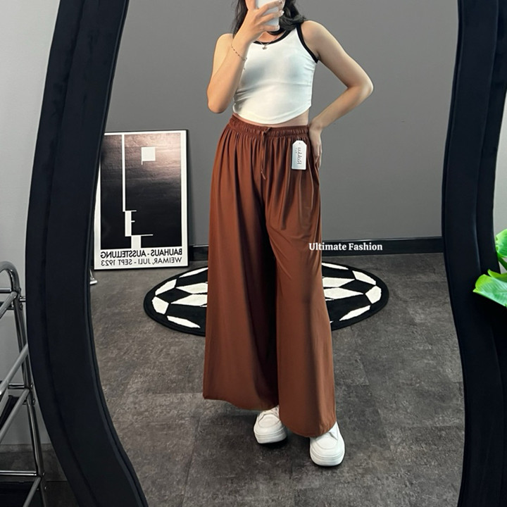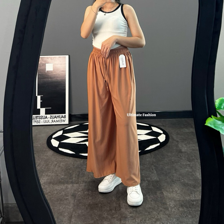 Kelebihan utama produk ini terletak pada desainnya yang sangat serbaguna; menggabungkan estetika Korean dan Minimalis dengan kenyamanan maksimal untuk aktivitas harian. Fitur High Waist dan model Wide Leg mengikuti tren fashion kekinian, membuatnya mudah dipadupadankan untuk berbagai acara kasual. Keunggulan tambahan adalah klaim kenyamanan untuk ibu hamil, menunjukkan pertimbangan desain yang inklusif.