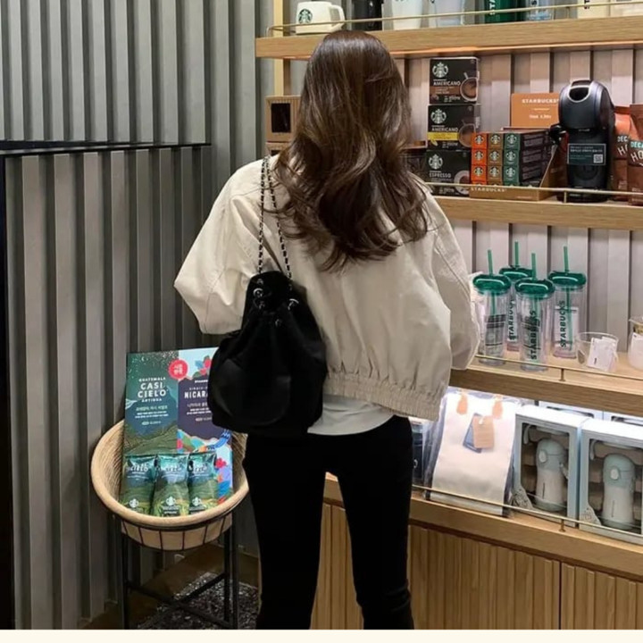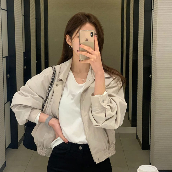 Wanita muda (usia 18-35 tahun) yang menyukai fashion Korea, mencari jaket casual atau semi-formal untuk aktivitas harian dan berkendara, serta memiliki budget menengah namun mengutamakan kualitas bahan.