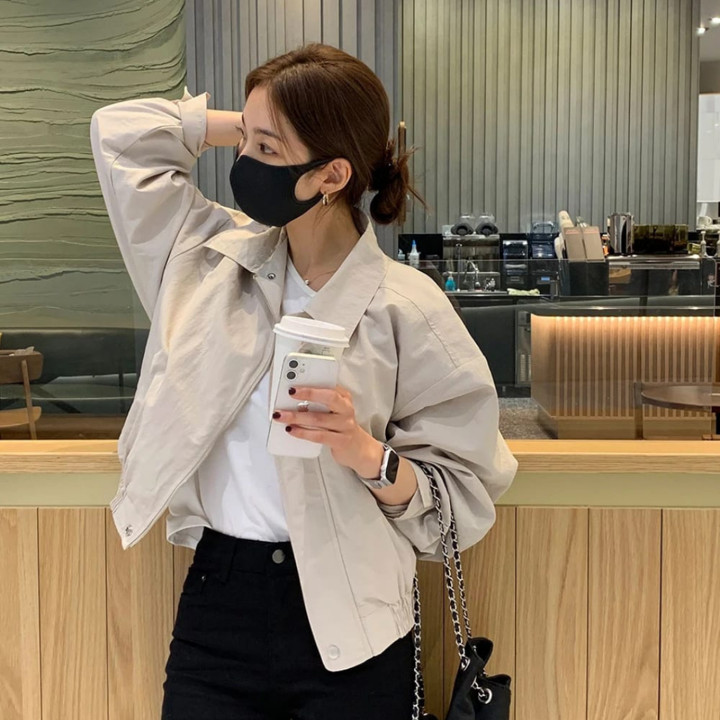 Jaket crop wanita Korea style ini menawarkan tampilan kekinian dengan bahan American Dril tebal namun nyaman, tersedia dalam varian warna hitam, abu-abu, dan krem. Dengan rating 4.91 dan penjualan 10.000+ unit, produk ini menjadi pilihan populer bagi wanita yang mencari jaket casual maupun semi-formal yang tahan angin.