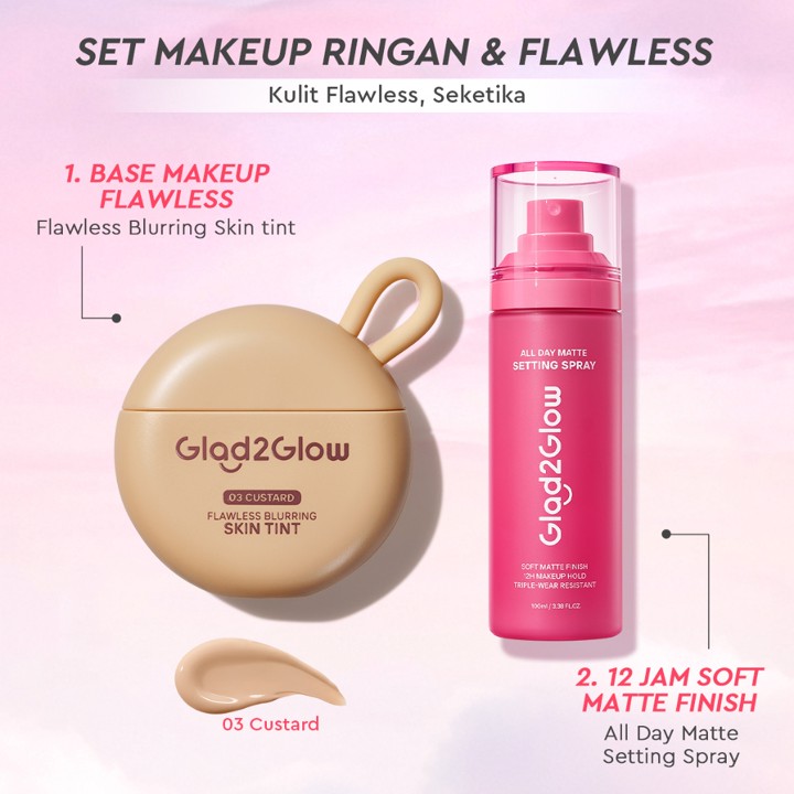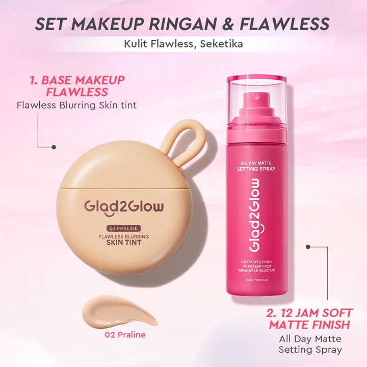 Glad2Glow Flawless Blurring Skin Tint menawarkan solusi makeup lengkap dengan coverage full namun tetap terasa ringan seperti tidak memakai apa pun. Diformulasikan dengan teknologi Bio-Mimetic Film dan kandungan Squalane, produk ini menjamin hasil flawless tahan hingga 12 jam sambil merawat kulit. Dengan harga di bawah Rp 60.000, produk ini menjadi alternatif premium yang sangat terjangkau untuk mencari foundation berkualitas tinggi.