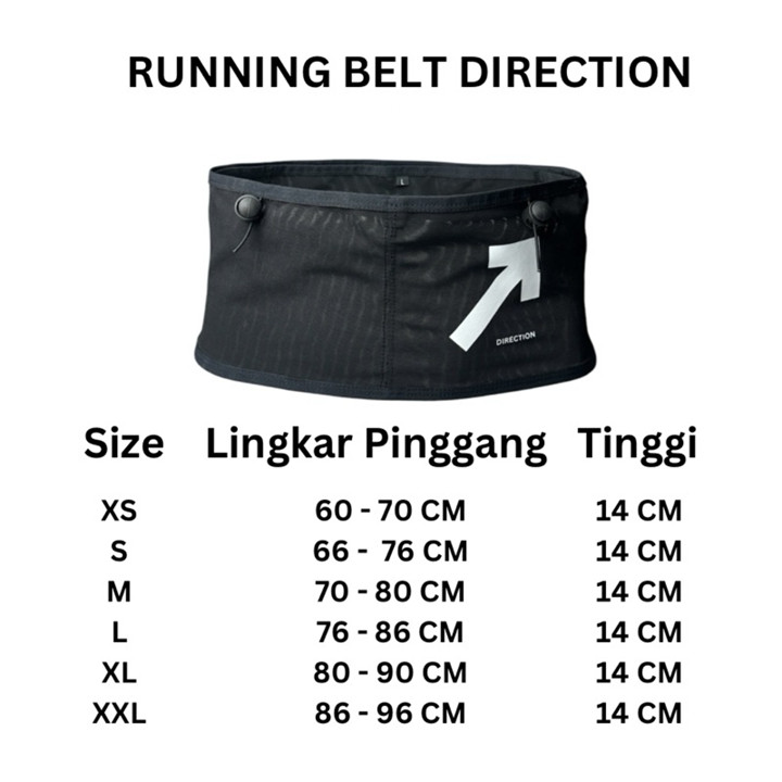 Running Belt Direction adalah aksesori multifungsi yang ideal untuk pelari, menawarkan kapasitas penyimpanan besar hingga 2 liter+ dengan desain yang ringan dan nyaman dipakai saat beraktivitas. Dibuat dari bahan berkualitas, belt ini dilengkapi fitur spesifik seperti tali BIB dan tempat trekking pole, menjadikannya pendamping lari yang komprehensif.