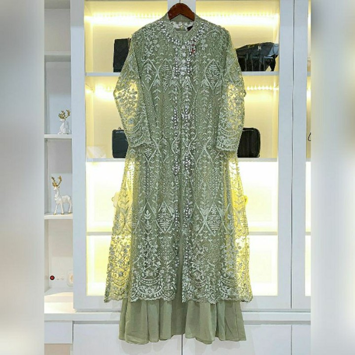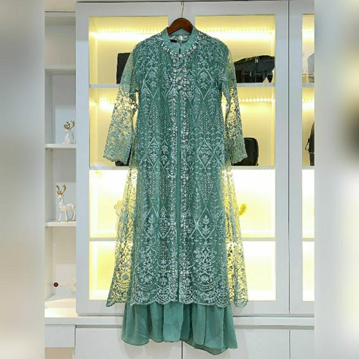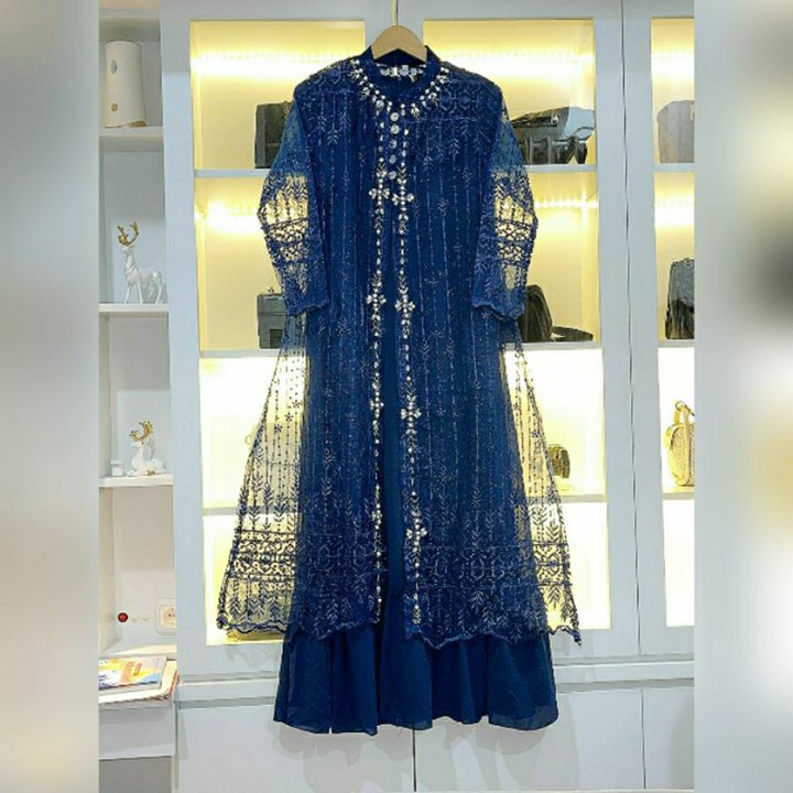 Produk ini menonjol dengan desain gamis modern yang menggabungkan estetika batik tradisional dengan potongan dress yang kekinian, sangat cocok untuk acara pesta atau perayaan Lebaran. Fitur unggulan meliputi jahitan yang rapi dan profesional, serta desain resleting di bagian depan yang memudahkan penggunaan. Tersedia juga opsi rompi lepas pasang yang menambah fleksibilitas gaya, membuat satu set pakaian dapat digunakan untuk berbagai kesempatan formal maupun semi-formal dengan variasi tampilan yang dinamis.
