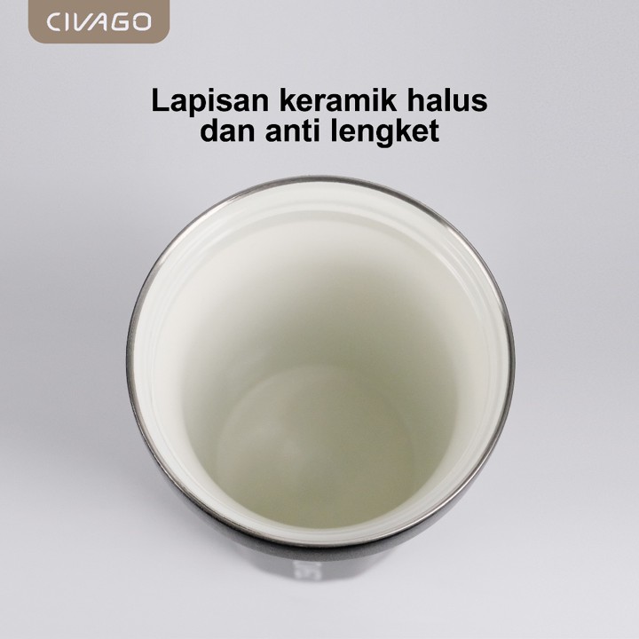 CIVAGO Mug Stainless Steel 13oz menawarkan solusi praktis untuk pecinta kopi dengan kombinasi bodi stainless steel 304 dan liner keramik yang menjaga suhu minuman tetap optimal. Dengan harga Rp 120.148 dan penjualan lebih dari 80.000 unit, produk ini membuktikan popularitasnya sebagai pilihan termos vakum yang tahan bocor dan bebas BPA. Meskipun belum memiliki sertifikasi SNI, kualitas material dan fitur isolasi vakum menjadikannya alternatif terjangkau untuk kebutuhan harian.