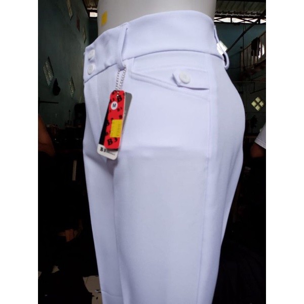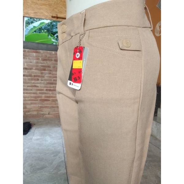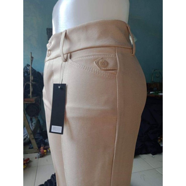 Desain celana ini mengusung gaya formal dengan potongan slim fit yang presisi, menjauhkan diri dari model pensil yang ketat atau celana lebar yang kaku. Pilihan warna polos dan model mid waist dengan ban pinggang melengkung memastikan kecocokan dengan berbagai gaya kerja yang menuntut kesopanan dan kerapian. Varian ukuran yang tersedia sangat komprehensif, mencakup rentang 2L hingga 8L, yang sangat krusial untuk memfasilitasi pelanggan dengan postur tubuh besar tanpa harus mencari toko khusus plus size yang terbatas pilihannya.