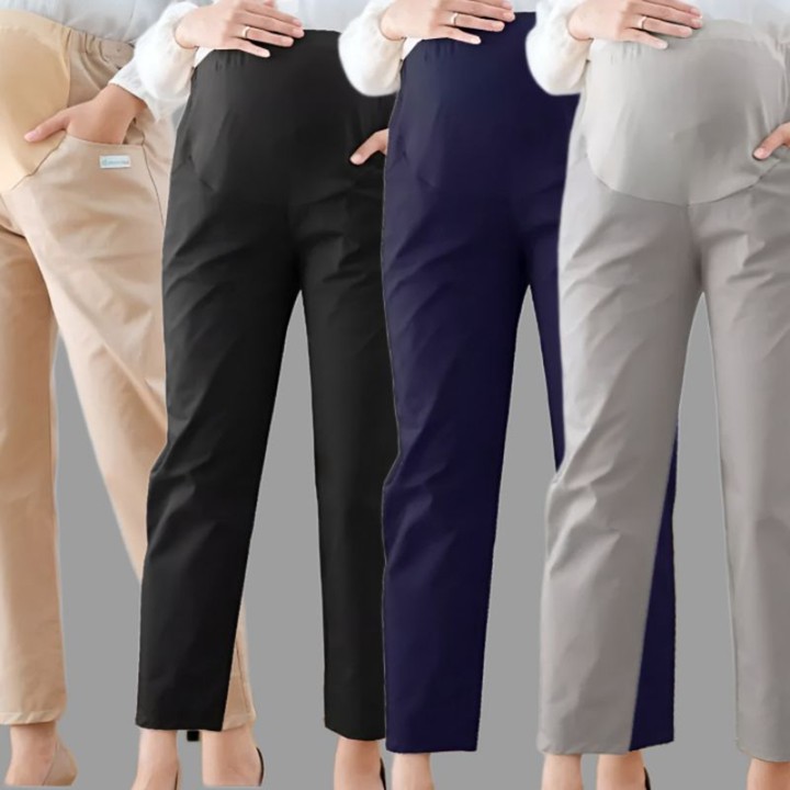 Desain celana ini mengusung gaya straight leg dengan motif polos yang timeless, sangat cocok untuk etalase profesional di kantor. Tersedia dalam ukuran standar hingga jumbo, produk ini dilengkapi waistband mid-waist yang fleksibel dan karet tambahan, sehingga mampu menyesuaikan dengan perubahan volume perut tanpa memberikan tekanan berlebih atau rasa sesak.