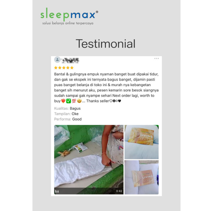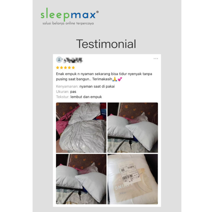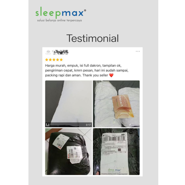 Nilai uang (value for money) dari Sleepmax sangat tinggi mengingat harganya di kisaran Rp 75.999 untuk satu set yang mencakup dua bantal, jauh lebih hemat dibandingkan merek premium lain yang bisa mencapai dua kali lipat harganya. Perbandingan dengan produk sejenis menunjukkan Sleepmax unggul dalam hal keseimbangan antara harga murah dan spesifikasi bahan yang berkualitas, seperti penggunaan dakron silicon murni alih-alih busa murah yang cepat keras. Aksesibilitas pembelian juga diperkuat dengan opsi pengiriman instan via Gojek/Grab, menambah nilai praktis bagi pembeli yang mendesak.