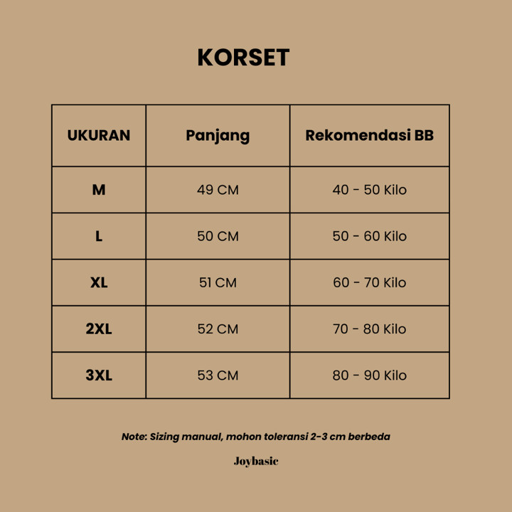 Wanita Indonesia dengan berat badan 50-85 kg yang mencari korset fungsional untuk memperbaiki postur, membuat pakaian lebih rapi, atau dipakai sebagai layering di bawah gaun kondangan.