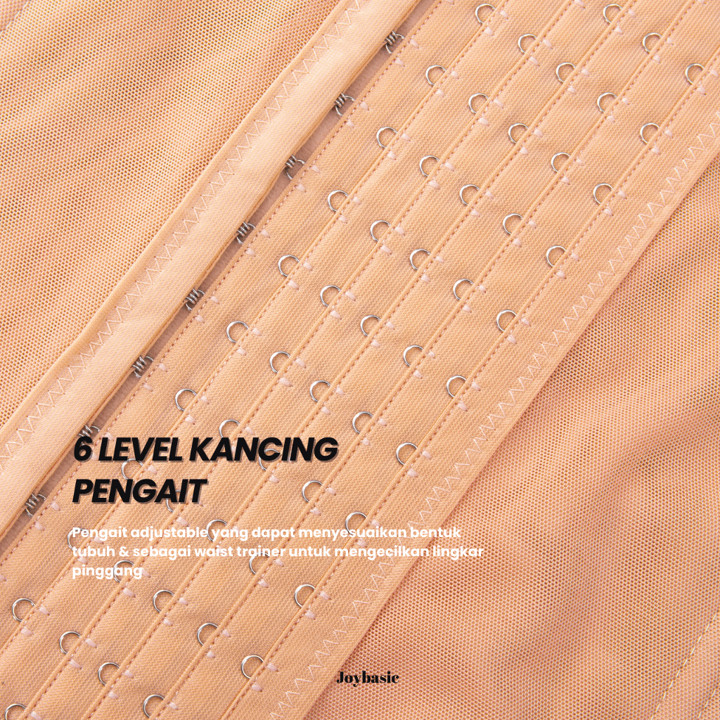 Produk ini dibekali fitur unggulan berupa sistem 6 level kancing pengait yang dirancang ergonomis untuk mengecilkan lingkar pinggang sekaligus mengangkat dada, menciptakan proporsi tubuh yang ideal. Konstruksinya diperkuat dengan 4 tulang penyangga di bagian depan dan belakang yang mencegah korset bergulung saat duduk atau bergerak, memastikan postur tubuh tetap tegap dan rapi tanpa gangguan mekanis.