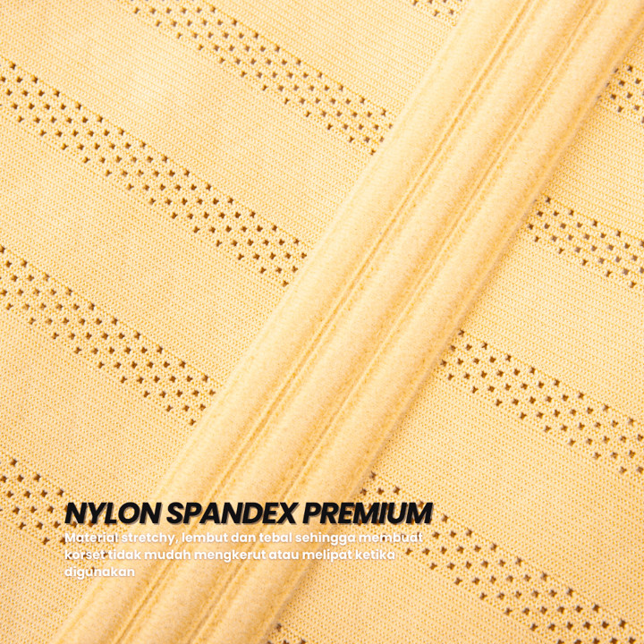 Terbuat dari campuran material premium Nilon dan Spandex, korset ini dirancang untuk memberikan kompresi maksimal tanpa mengorbankan kenyamanan, meskipun beberapa ulasan menyebutkan bahan yang cukup tebal. Konstruksi dengan 16 tulang penyokong memastikan bentuk yang rapi, namun kualitas jahitan pada beberapa unit dilaporkan kurang kokoh sehingga berpotensi robek jika digunakan terlalu kasar.