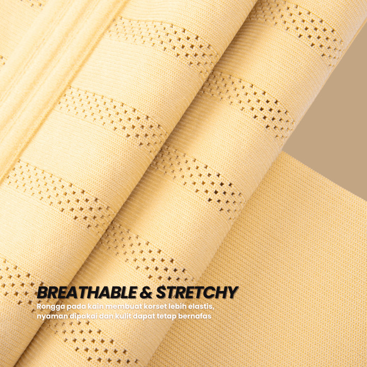 Produk ini menonjol dengan fitur kompresi kuat yang didukung oleh 6 level pengait dan belt kompresi ekstra, memungkinkan pengguna menyesuaikan tingkat ketatnya untuk mendapatkan siluet yang diinginkan. 6 level pengait dan double belt menjadi fitur kunci yang membedakan produk ini dari korset standar, memberikan dukungan ekstra untuk menyamarkan lemak perut.