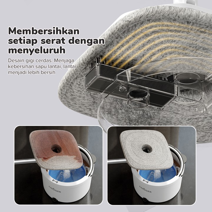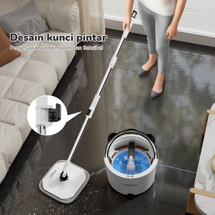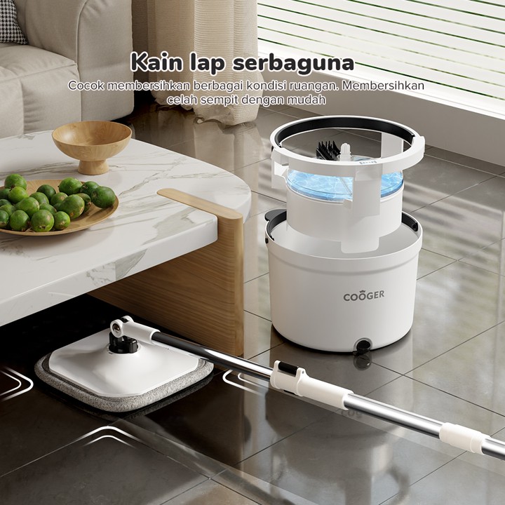 COOGER Spin Mop 2IN1 ini menawarkan solusi pembersihan lantai modern dengan fitur pemisahan air kotor dan bersih secara otomatis, membuat proses mengepel menjadi lebih higienis dan efisien. Desain putarannya yang inovatif menjamin kebersihan lantai maksimal dengan usaha yang lebih ringan. Cocok untuk rumah tangga modern yang mencari alat kebersihan multifungsi.