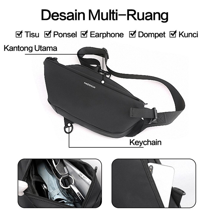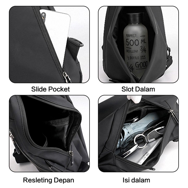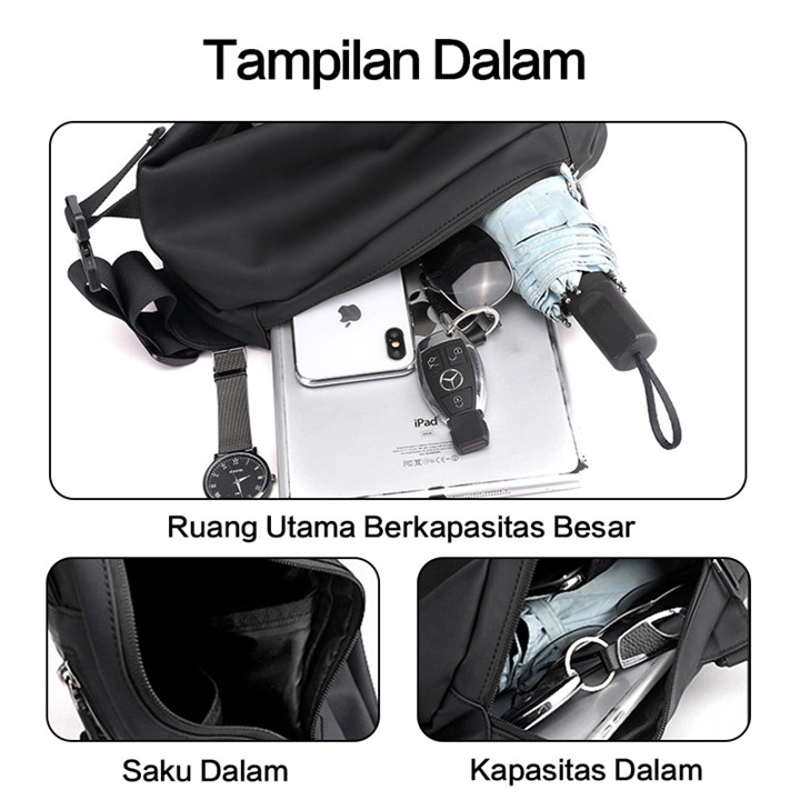 Tas selempang pria multifungsi ini menawarkan kombinasi antara gaya kasual dan kepraktisan tinggi dengan harga terjangkau. Dibuat dari bahan nilon dengan klaim anti air, tas ini sangat ideal untuk aktivitas sehari-hari yang membutuhkan penyimpanan banyak gadget dan barang esensial.