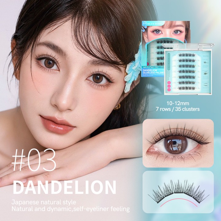 Bulu mata palsu MLEN DIARY ini menawarkan solusi riasan mata alami untuk pemula karena sistem pemasangan tanpa lem yang sangat praktis. Dengan desain menyerupai bunga matahari dan dandelion, produk ini memberikan tampilan yang cantik, nyaman, dan mudah dilepas tanpa merusak bulu mata asli.
