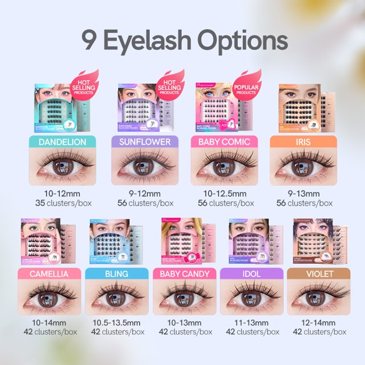 Secara konstruksi, produk ini menawarkan variasi spesifikasi yang cukup detail, mulai dari 1 baris bulu mata bawah dengan 6 tandan bunga matahari hingga opsi 6 baris dengan keriting C dan tinggi bulu mata 9-12mm. Meskipun atribut spesifik mengenai material utama bulu mata tidak disebutkan secara eksplisit, fokus pada desain 'alami' dan kenyamanan menunjukkan bahwa pemilihan bahan haruslah ringan dan tidak menyebabkan iritasi, didukung oleh ulasan yang menyebutkan rasa ringan dan nyaman.