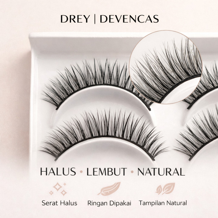 Drey Aura Bulu Mata Palsu Handmade Premium dengan tampilan natural dan serat super lembut, menawarkan kemudahan aplikasi untuk berbagai acara. Dikemas dalam 5 pasang, produk ini menjanjikan hasil yang terlihat seperti bulu mata asli namun tetap nyaman dipakai seharian.