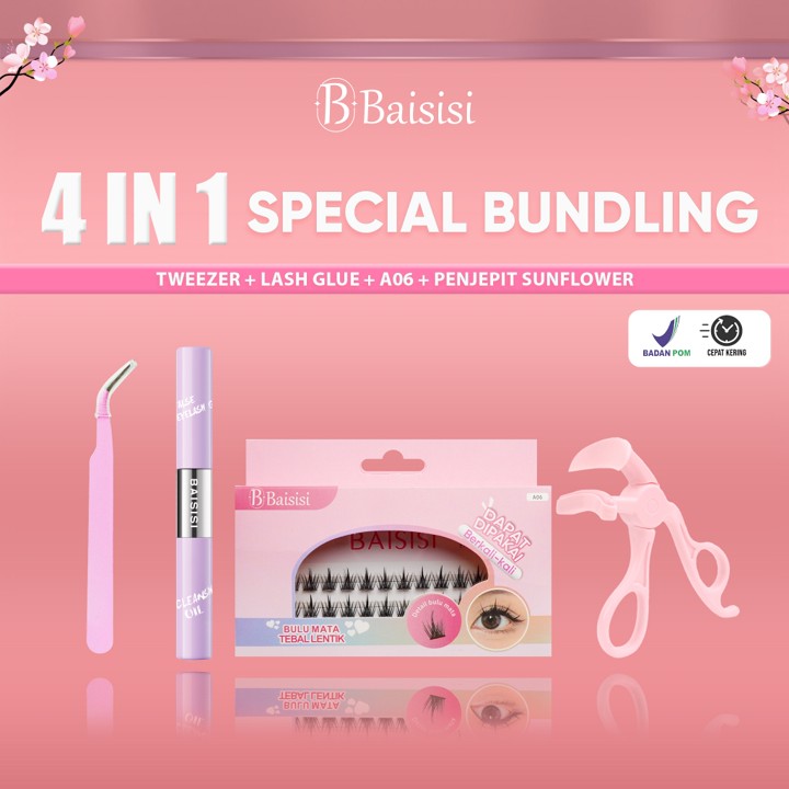 Paket super hemat ini menawarkan solusi lengkap untuk bulu mata palsu dengan bundling yang sangat menguntungkan. Selain bulu mata berkualitas dari BAISISI, Anda juga mendapatkan lem khusus, tweezer, dan penjepit, memastikan proses pemasangan menjadi lebih mudah dan profesional.