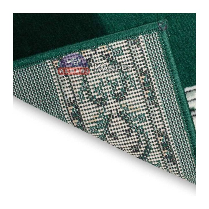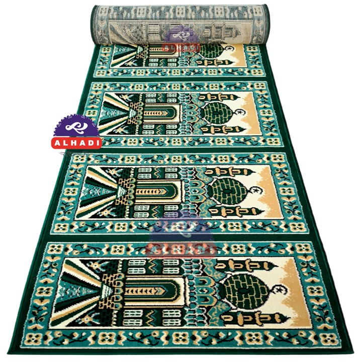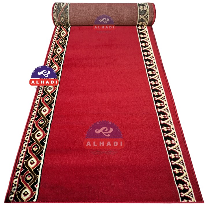 Secara fitur utama, karpet ini menonjolkan dimensi yang fungsional (570 x 105cm) dan ketebalan yang signifikan (9mm), menjadikannya terlihat tebal, padat, dan empuk saat digunakan. Desain motif Timur Tengah yang elegan memberikan nilai estetika tinggi, sehingga cocok untuk memperindah interior tempat ibadah. Keunggulan fungsional lainnya adalah sifatnya yang mudah dibersihkan, tidak menyerap bau, dan tidak rentan berjamur, yang sangat krusial untuk area komunal seperti masjid atau mushola.