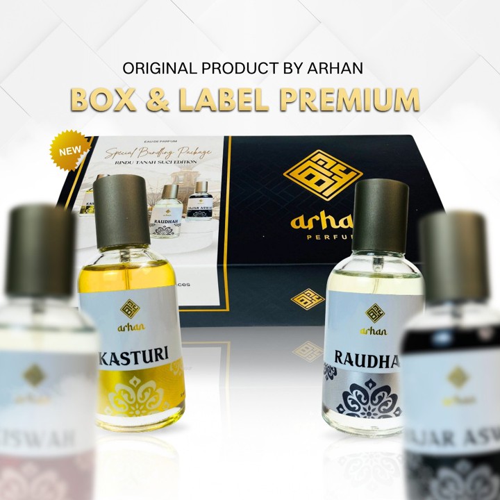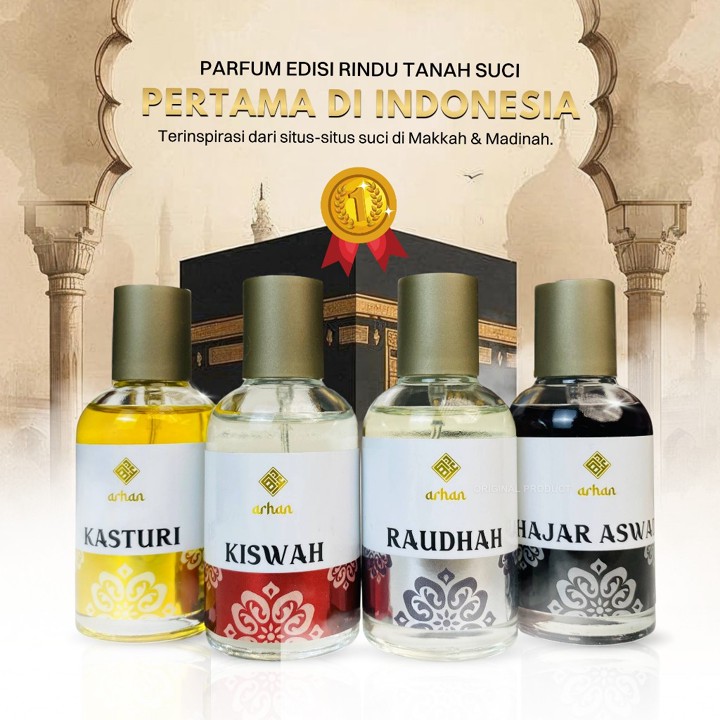 ARHAN Paket Parfum Rindu Tanah Suci menawarkan empat varian aroma mewah yang mengilhami keagungan Masjidil Haram dan Masjid Nabawi dengan harga terjangkau. Dilengkapi dengan pengemasan aman dan diskon signifikan, produk ini menjadi pilihan populer bagi peziarah atau mereka yang menyukai wangi Islami yang tahan lama. Dengan rating tinggi dan penjualan di atas 20.000 unit, produk ini terbukti diminati oleh banyak konsumen.