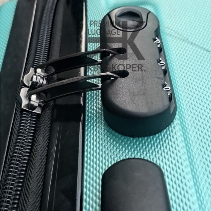 Material dan Konstruksi menggunakan kombinasi Fiber ABS dengan ketebalan 4 mm yang memberikan keseimbangan antara fleksibilitas dan ketahanan benturan. Tangkai dan trolley terbuat dari aluminium anti karat yang menjamin daya tahan jangka panjang meskipun sering terkena cuaca lembap di Indonesia. Lapisan dalam berbahan satin tebal mencegah pakaian atau barang berharga di dalamnya menjadi kusut atau terkena serpihan kasar dari luar.