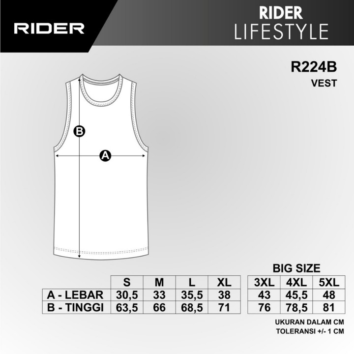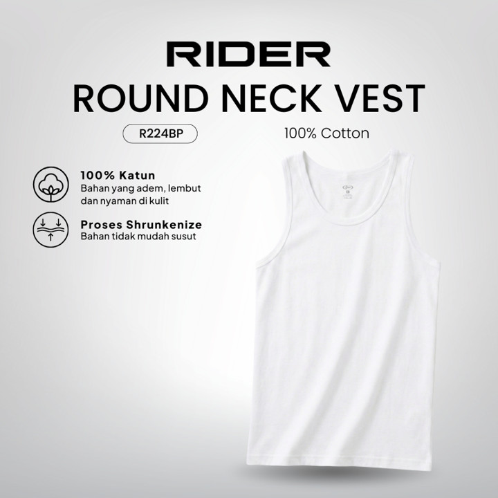Singlet pria berbahan katun 100% dari merek Rider, ideal untuk kebutuhan pakaian dalam harian dengan desain klasik dan kenyamanan maksimal. Dengan pilihan ukuran jumbo hingga 5XL, produk ini menawarkan solusi pakaian dasar yang terjangkau namun tetap menjaga kualitas original.
