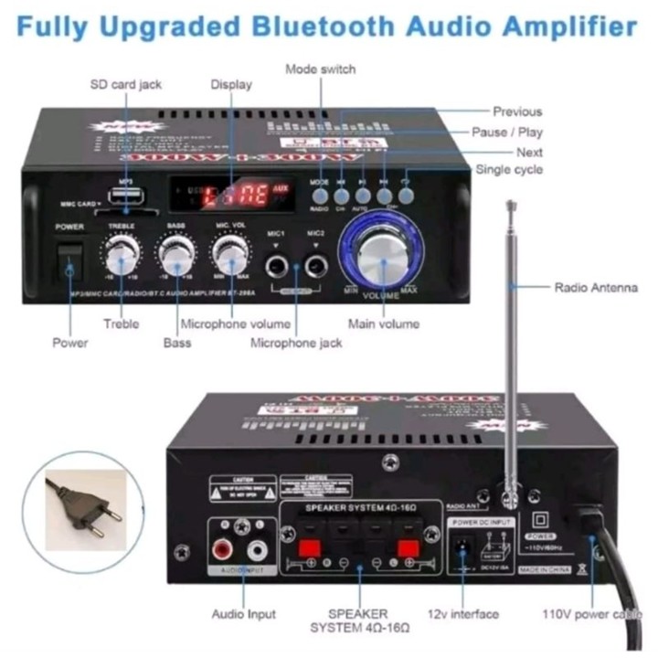 Produk ini dilengkapi dengan fitur lengkap yang mencakup Bluetooth untuk streaming nirkabel, FM radio, serta input mikrofon dinamis 6.5mm untuk fungsi karaoke. Kemampuan EQ audio memungkinkan pengguna mengatur bass dan treble secara langsung, menghasilkan suara yang lebih jernih dan bertenaga sesuai kebutuhan ruangan. Selain itu, keberadaan remote control memudahkan pengelolaan fungsi tanpa harus berdekatan dengan unit amplifier, menambah kenyamanan penggunaan di lingkungan rumah atau acara hiburan kecil.