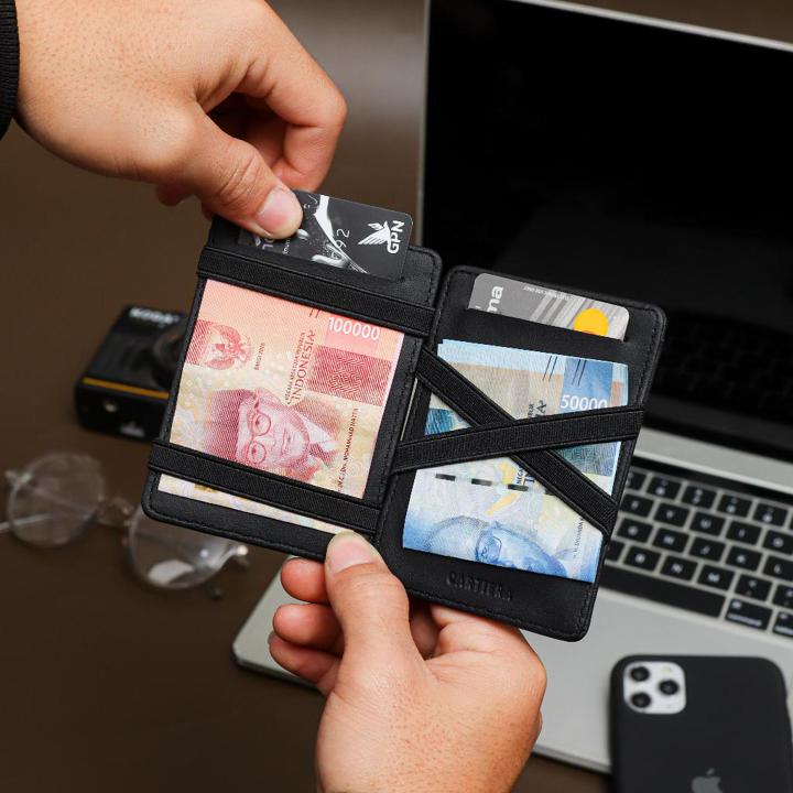 Dompet kece dengan konsep bukan sulap bukan sihir. Asli bagusaas bgttt jadi ga ribet klo pingin buru2 masukin uang ke dompet cakep pwoooll๐๐๐๐ bisa muat duit cash banyaaaakk , space untuk card ada 8 pocke