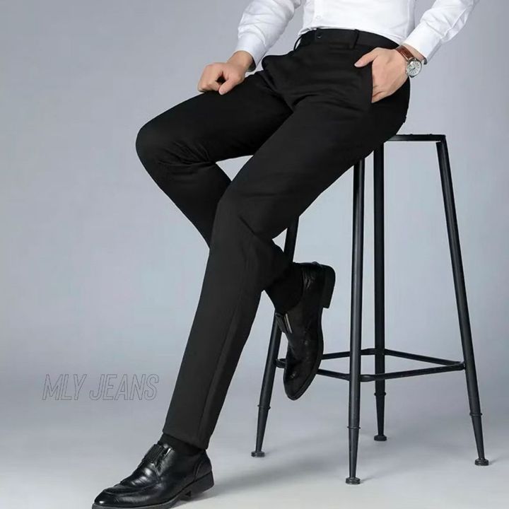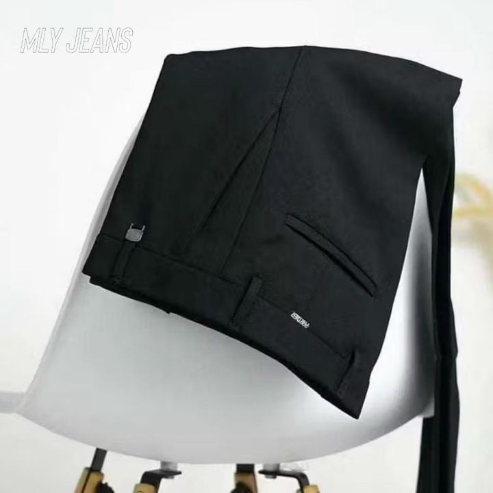 Desain Slimfit memberikan siluet modern dan rapi, tersedia dalam warna hitam dasar yang serbaguna. Tersedia pilihan ukuran hingga 34 (Jumbo) dengan variasi panjang kaki, memungkinkan pembeli menemukan pas yang sesuai dengan proporsi tubuh mereka tanpa perlu modifikasi besar.